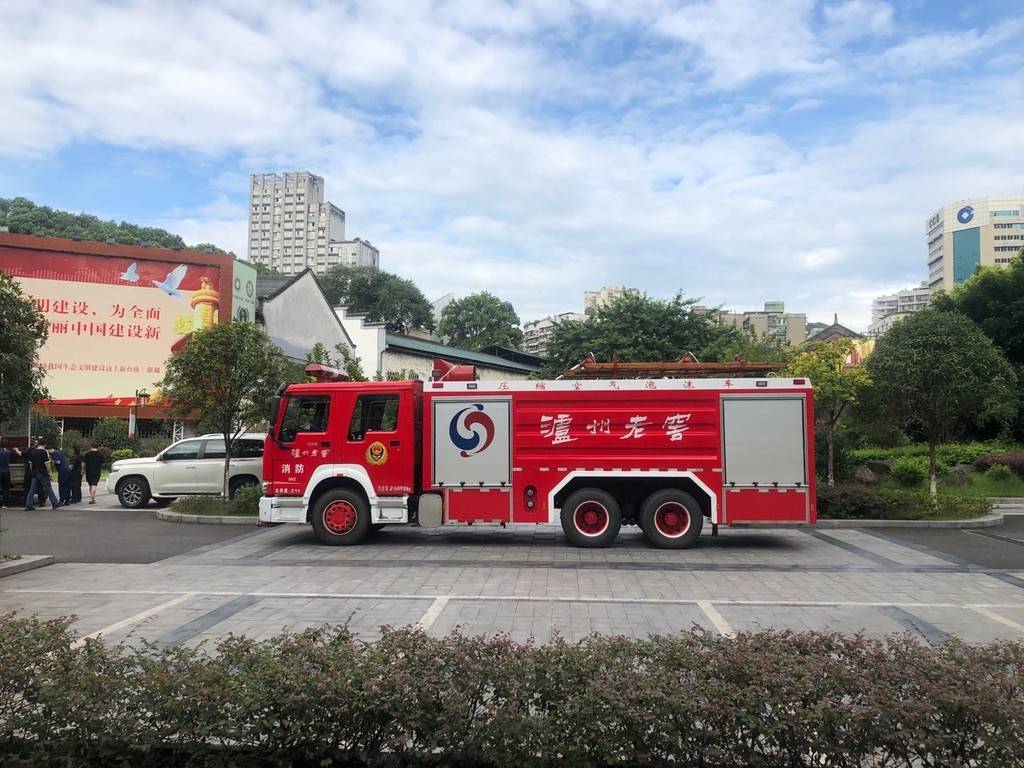 泸州老窖国宝窖池景区。消防车早已提前准备。陈向前摄