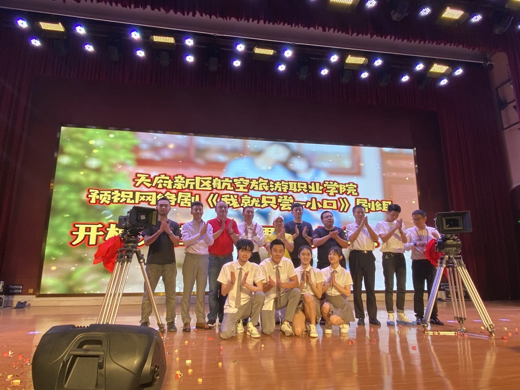 8月19日,四川影视公司帆鱼文化传媒出品、制作的校园题材网剧《我就只尝一小口》在天府新区航空旅游职业学院开机。