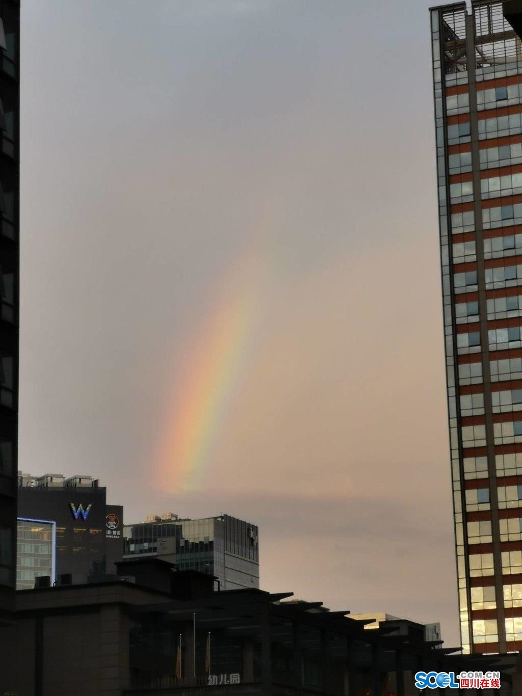 连日强降雨结束后,今(19)日傍晚,成都、眉山主城区及新津等多地空中出现彩虹景观,部分地方还可目击到双彩虹。