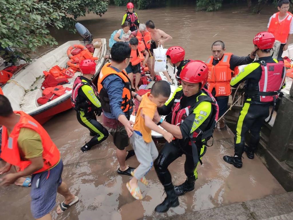 8月17日,救援队在金堂县三星镇幸福村白鹭岛,成功转移被困村民70多人。此后,又前往金堂县赵镇赵渡社区抢险救援。“从中午一直干到晚上9点多,直到最后一名群众被转移到安全地带。”