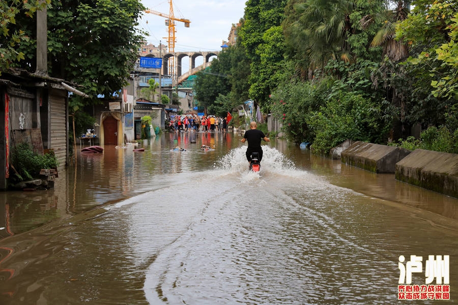 8月19日,长江、沱江洪峰抵达四川泸州交汇,地势低洼地带被水淹没。