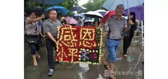 2014年8月22日,广安市群众抬着摆出“感恩小平”字样的花牌,到协兴镇小平故里纪念邓小平诞辰110周年。 四川日报记者 何海洋 摄