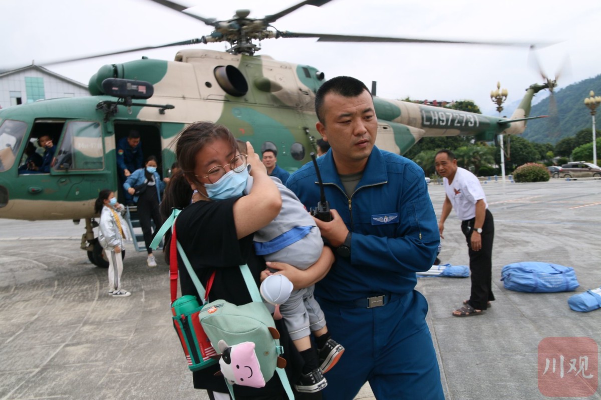 8月22日上午11时,由77集团军某陆航旅特级飞行员李金武、一级飞行员张磊带队的救援机组准时升空起航,再次向险而行,挺进“水上孤岛”绵阳平武白马乡。