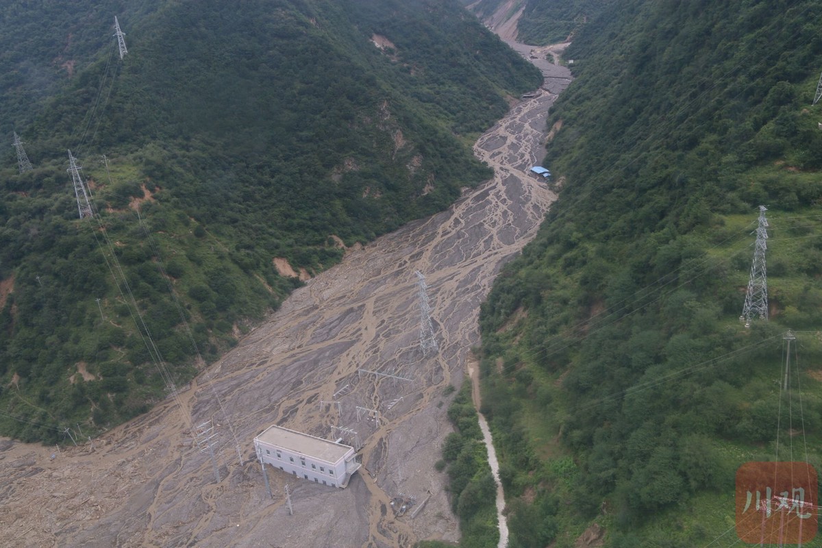 阴沉沉的天空没有透出一丝阳光,直升机在云雾笼罩的山谷中艰难前行。30分钟后,救援机组顺利到达目的地白马乡祥述加村。由于连日阴雨影响,当地汛情有增无减。记者从空中看到,祥述加村两侧山体依然存在滑坡现象,雨水卷着碎石不断向下滑落。救援机组小心翼翼地操纵直升机向预定机降点靠近,减速、悬停、精准着陆,机组成员迅速跳下舱门,将物资卸下。
