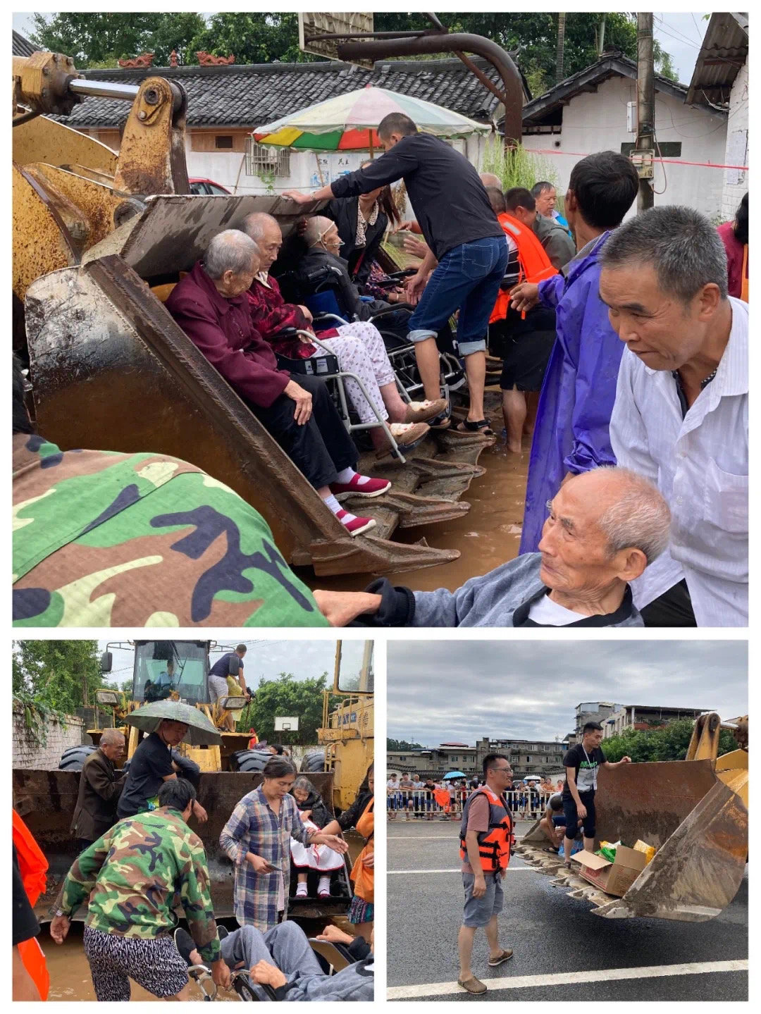 乐山高新区两家民办养老机构被淹,高新区民政人多方调集资源,巧妙利用挖土机转移受困老人,行动不便的老人连人带轮椅一次运出。为了让等待转移的老人不饿肚子,他们又使用皮划艇送饭送水,一场紧张的救援,在舟车齐发中顺利完成。