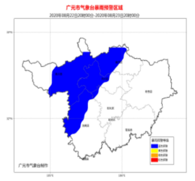 8月22日下午,四川省眉山市、广元市、绵阳市气象台先后发布了暴雨蓝色预警。