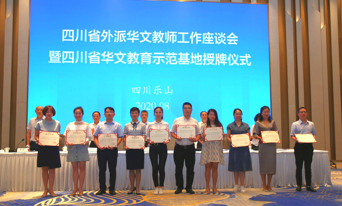 8月21日,四川省外派华文教师工作座谈会暨“四川省华文教育示范基地”授牌仪式在乐山举行。仪式上,10位被海外华文学校评为优秀教师的同志获授“2019年度四川统一战线优秀外派华文教师”,乐山市获授“四川省华文教育示范基地”,这也是全省首个华文教育示范基地。