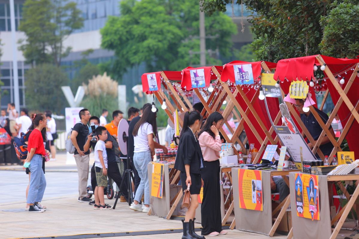 在“青年创意市集”里,25家青年文创、农创、科创企业携200余件潮流产品现场展销,这些企业大多来自成都“创新新星”计划或青年(大学生)创业园孵化项目,其中小林创意、跃动跳绳、一木山楂等展位带来的产品吸引了大量市民驻足围观。在青少年国际书画展现场,60幅来自中国、英国、俄罗斯、马来西亚等国家的青少年绘画作品,用孩子们的视角记录创新创造、城市建设、文化艺术、携手抗疫等主题,表达了国际青少年热爱和平、珍视友谊、共建国际友城的美好情感。