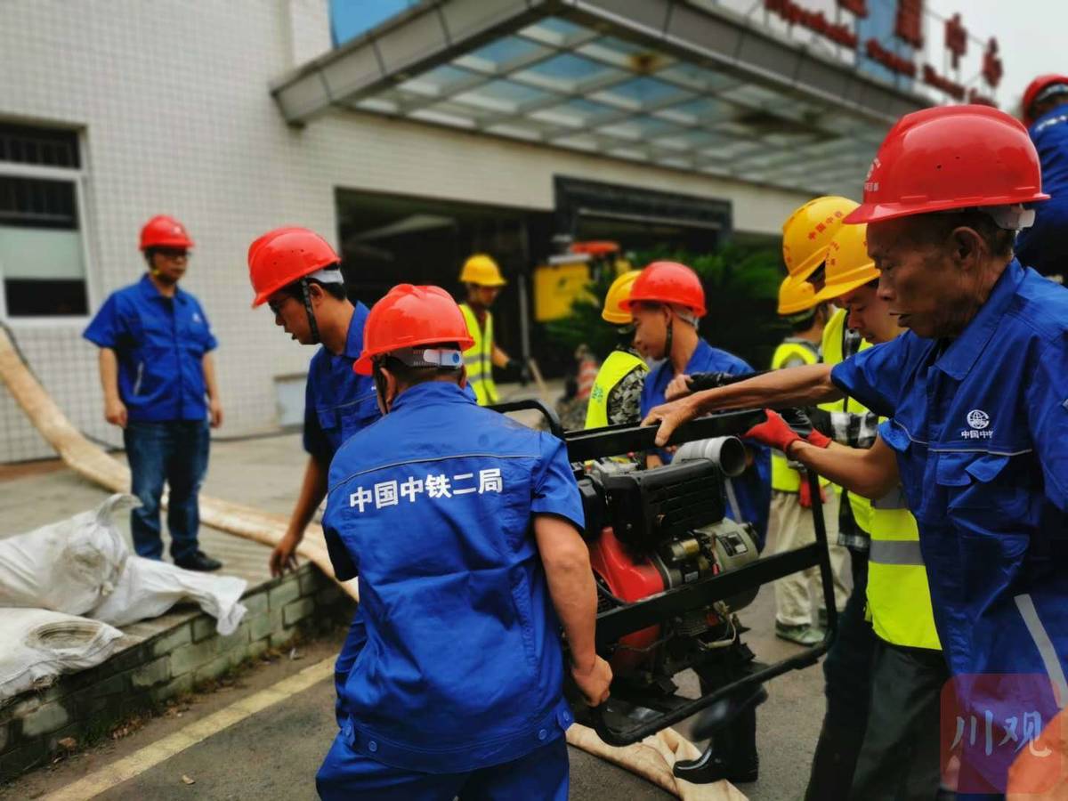 同时,8月22日,中铁二局再次紧急调集多台套抽排水设备及配套设施,工人40余人,救援车辆10余台,救援物资若干,快速投入地下积水水位近6米的乐山市武警医院高压氧中心(武警医院)开展紧急排水抢险工作。