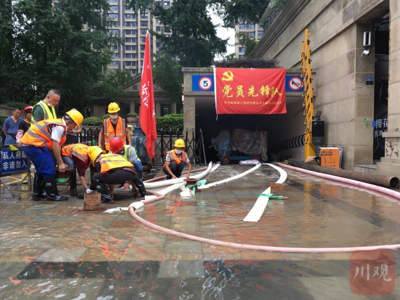 四川路桥接到省住建厅抢险指令后,连夜行动,组织8名抢险救灾突击队队员携200千瓦发电机1台,37千瓦水泵3台,双桥车1辆,22日到达乐山市中区嘉州花城小区开展小区地下停车场积水抽排工作。