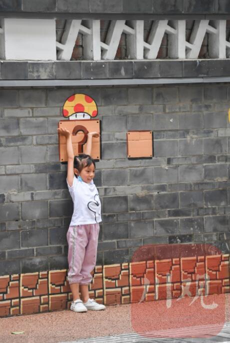 墙体彩绘图案因地制宜,与80年代的经典游戏——“超级玛丽”相辅相成,勾起了80、90后的童年记忆,也让这条老街增添了一丝活力和艺术气息。