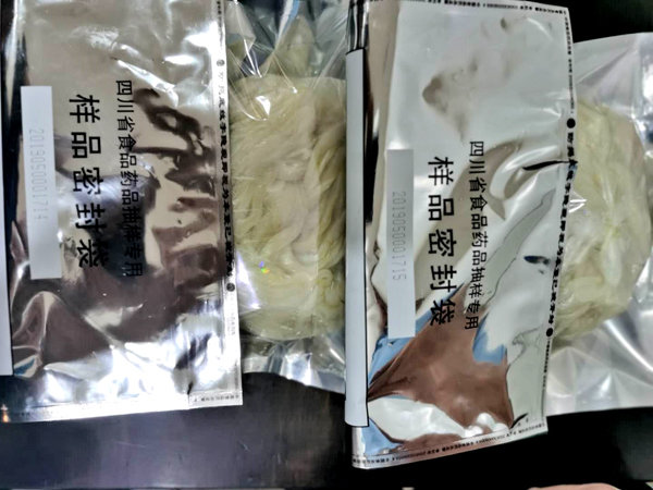 交了钱,接过凉面碗,他们拿出食品药品抽样专用样品密封袋,将凉面分别放入密封袋中……