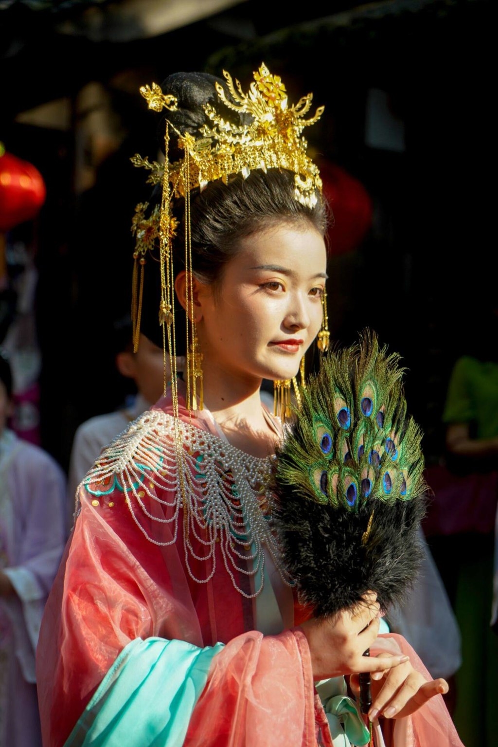 七夕当日,身着汉服的仙子,手持利刃的锦衣卫,未出阁的妙龄少女,风度翩翩的书生,游走在成都锦里,这一刻,仿佛穿越回古代,感受一把中国的古典韵味和服饰的魅力。此外,市民们在锦里还体验了七夕传统斗巧活动,茶道、香道、花道、舞蹈、民乐、簪娘和汉服制作等。