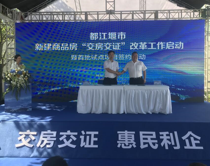 当日下午,都江堰市规划和自然资源局与首批试点的2家房企签约试点, “预计到明年底,将与10家房企签约,之后将全面推广。”赵旭东说,此次改革试点启动后,将加快实现住权与产权同步,真正让群众购房无忧、办证无忧。