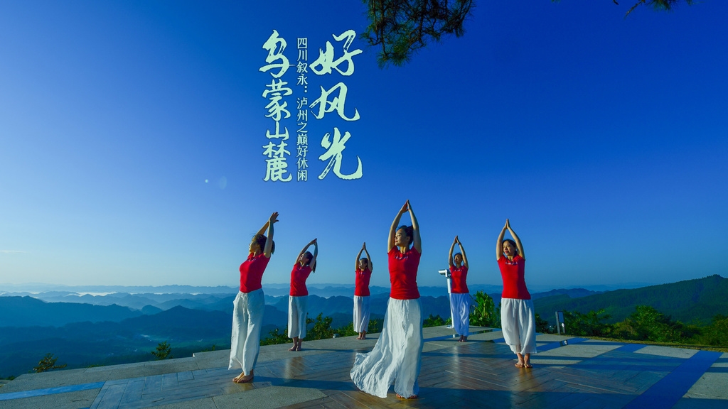 叙永县分水镇罗汉林乡村振兴产业扶贫特色小镇,瑜伽爱好者远足而来,沐浴朝晖,放松身心。