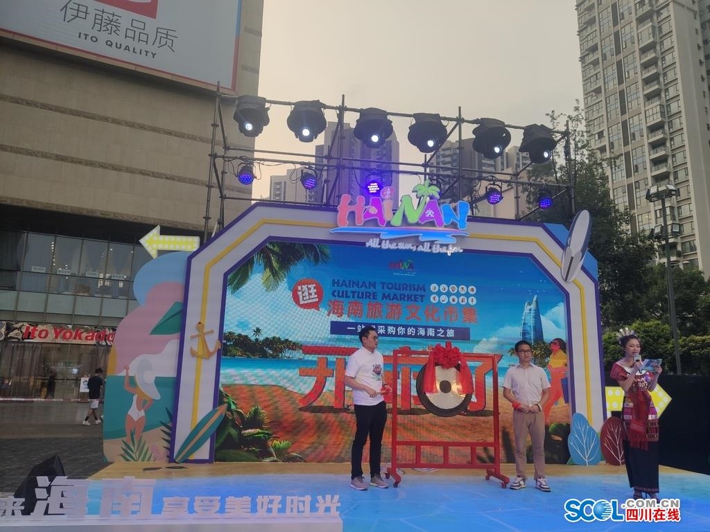 想体验椰岛风情,家门口就可打卡!8月28日,由海南省旅游和文化广电体育厅主办、海南省旅行社协会承办的“千万人游海南系列活动之海南旅游文化市集首站(成都站)”在成都世豪广场购物中心举行。