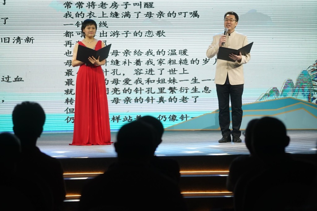 当晚,海光、海江、敏文、姝雅、王茜四位朗诵艺术家一一登台,朗诵了阿来、梁平、张新泉、李钢、傅天琳、华万里等经典诗篇。本次朗诵会分为“双城明月话诗酒”“九天开出一成都”“却话巴山夜语时”三个篇章,用充满成渝味道的诗歌,贯穿两地文脉与诗酒情。