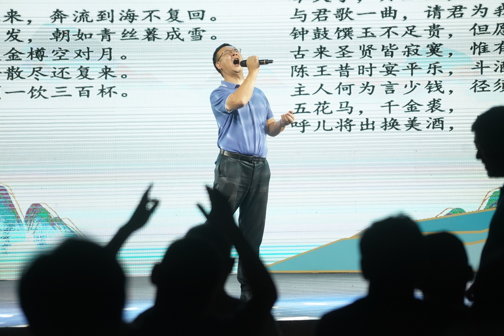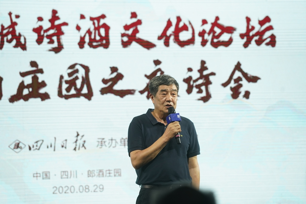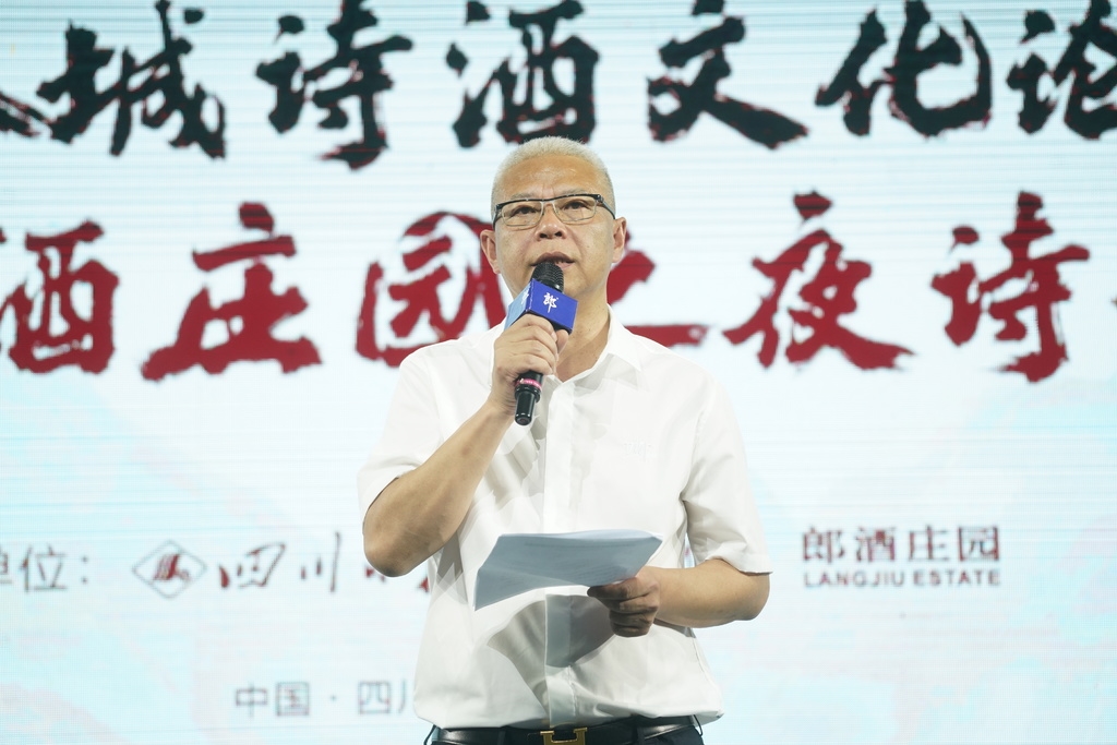 郎酒集团党委书记李明政同样是一位诗人,他以诗一般的致辞欢迎所有人的到来。“佳酿三千,独爱郎酒。山魂水魄,尽在其中。”李明政认为,成渝双城山水山水相连,血脉相承,文化根基深厚。“相如赋、太白诗、东坡词”,仅九个字就道尽了成渝双城深厚的文化基因,“相信本次活动必将促进成渝双城文化交流,在成渝双城诗歌发展史上留下浓墨重彩的篇章。”