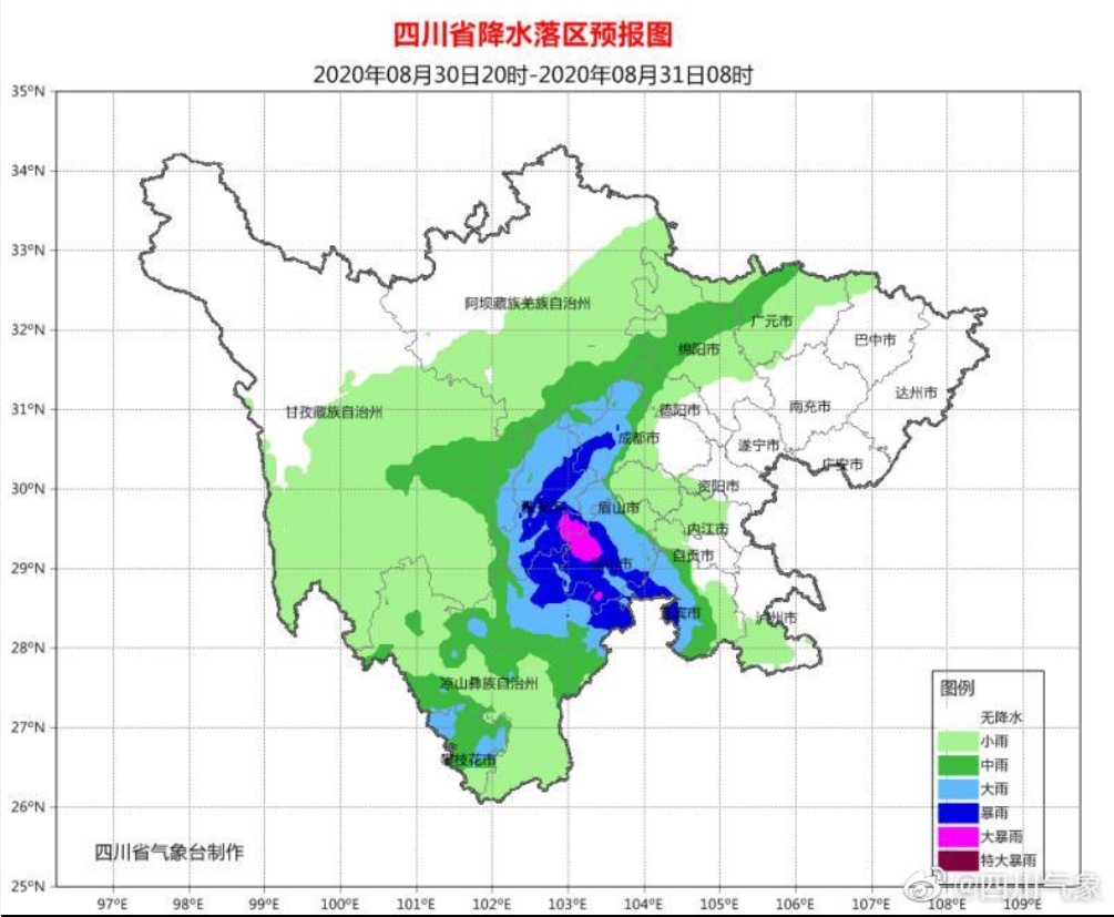 四川省气象台8月30日15时30分继续发布暴雨蓝色预警:
