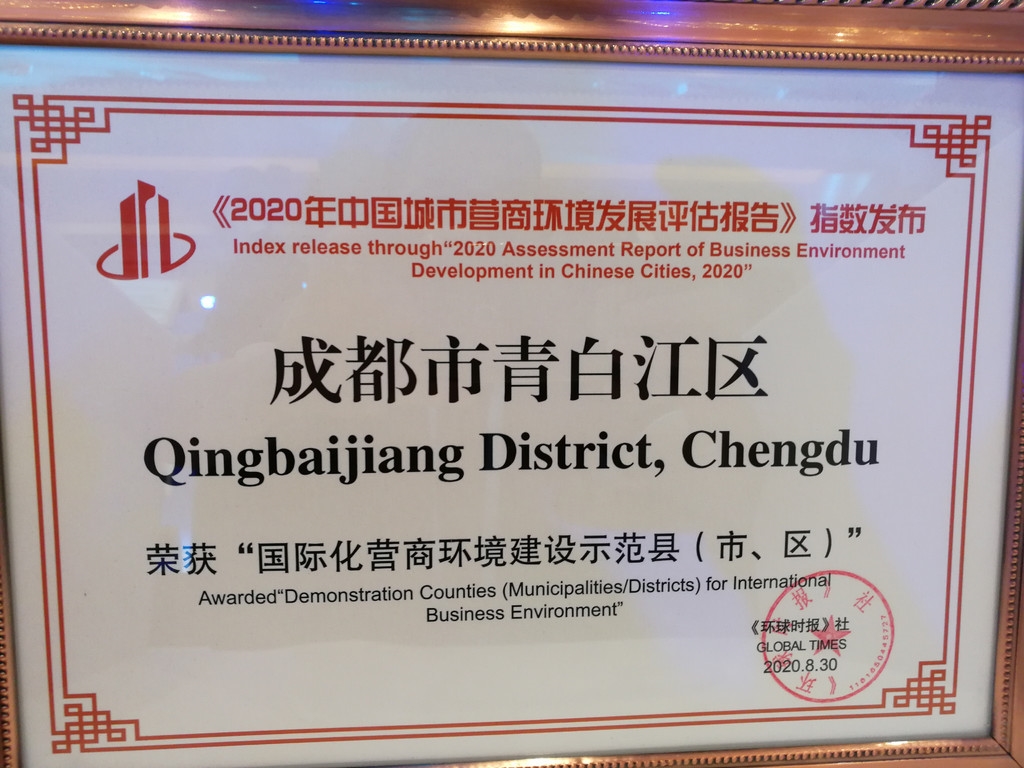 8月30日,记者从第二届中国国际化营商环境高峰论坛暨《2020中国城市营商环境投资评估报告》发布会获悉,成都市青白江区连续三年获评“营商环境质量十佳县(市、区)——综合竞争力”,蝉联“中国国际化营商环境建设示范区”。