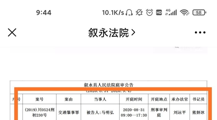 8月31日,记者从泸州市叙永县法院获悉,从8月31日到9月4日有34起案件将于该院开庭审判。其中,今日上午9点开庭的(2019)川0524刑初230号交通肇事罪案件即为谭松韵妈妈被撞的案件。
