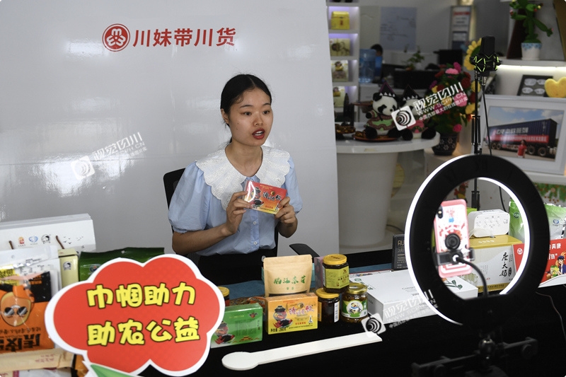 8月28日,位于成都双流的四川自贸区妇女之家里,一位年轻的女孩正在往上直播带货,以“巾帼助力,助农公益”为主题想大家推荐优质的四川农产品。玲琅满目的优质四川造农产品,加上女孩声情并茂的推荐,受到广大网民的青睐。