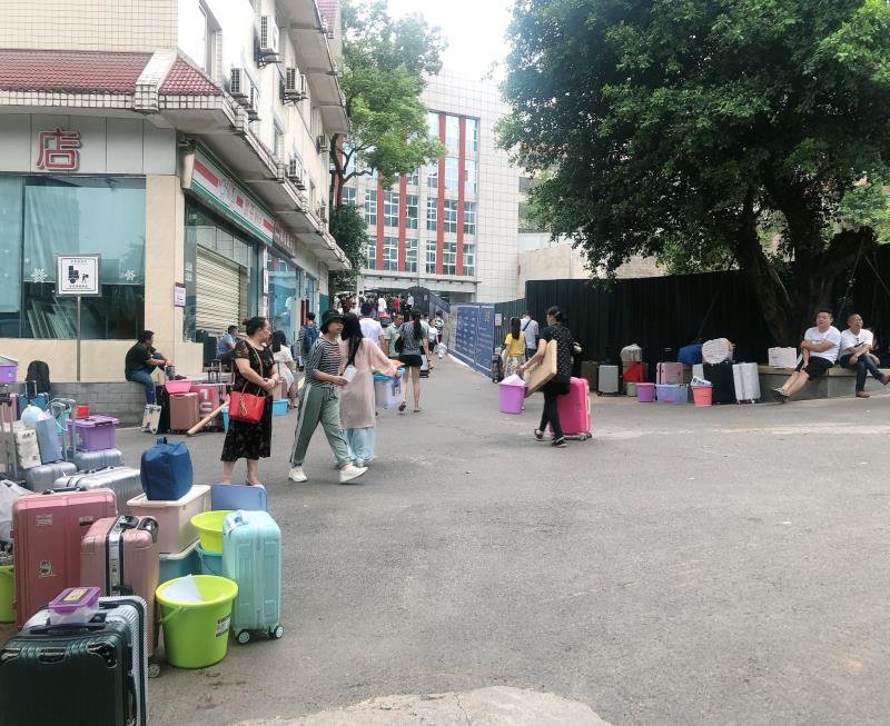 “各位新同学,请在学校门口进行消毒以及体温检测......”8月31日上午8点,四川省泸州外国语学校(简称泸州外国语学校)校门口,行李箱滚轮滑动的声音持续不断,上百名新生与家长“肩挑背扛手拉”齐上阵,像极了搬家的样子,一旁的“老生”志愿者们和值班教师也赶紧前来帮忙。