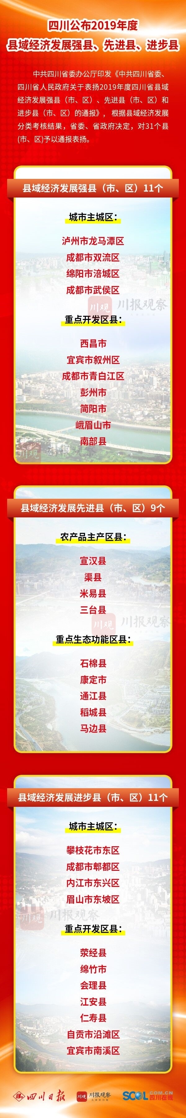 2019年度四川省县域经济发展强县(市、区)、先进县(市、区)和进步县(市、区)名单