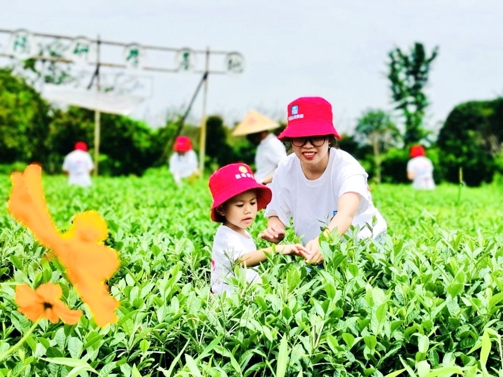 8月29日,在职工志愿者的陪伴下,10组家庭来到蒲江茶乡,孩子们背上小背篓,和父母一起采摘茶叶,学习如何采茶、制茶,还穿上汉服,向父母师长奉茶、敬茶,感受传统文化魅力,传承孝文化真谛。