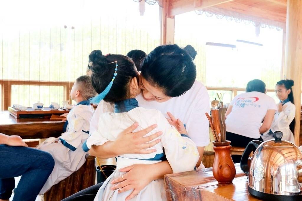 费了九牛二虎之力后,采摘的鲜茶变成了干茶,茶香味四溢。抱着自己制好的茶,比着茶艺师的动作模仿起来,“小候鸟”们体验茶文化历史中孝的内涵。不一会儿,茶的香气从杯里飘出来,“小候鸟”们换上了汉服,端起茶杯奶声奶气地说:“爸爸妈妈,你们喝茶。”在这一刻,父母看到孩子们认真的样子愣住了,感动的不知道该怎么接过茶杯。