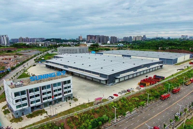 据悉,该配送中心属于苏宁集团第三代物流基地,占地150亩,是内江市最大的现代化、智能化物流基地。每个仓库层高净空达9米,1号仓库内堆放了近8万件以传统家电为主的大件货物,整个配送中心能存放20万件大件货物。