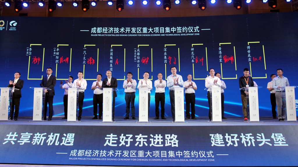 8月31日,成都经开区(龙泉驿区)举行重大项目集中签约仪式,集中签约24个重大项目,总投资629.5亿元。