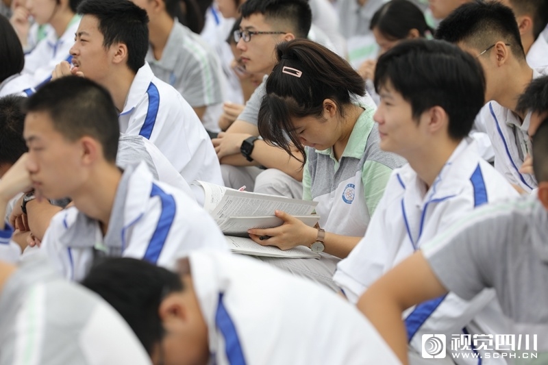 9月1日,电子科技大学实验中学在清水河校区体育场召开了开学典礼。在开学典礼现场,一群拿着课本、练习册埋头学习的学生坐在人群中格外引人注目。据了解,这是刚迈入高三年级的学生。