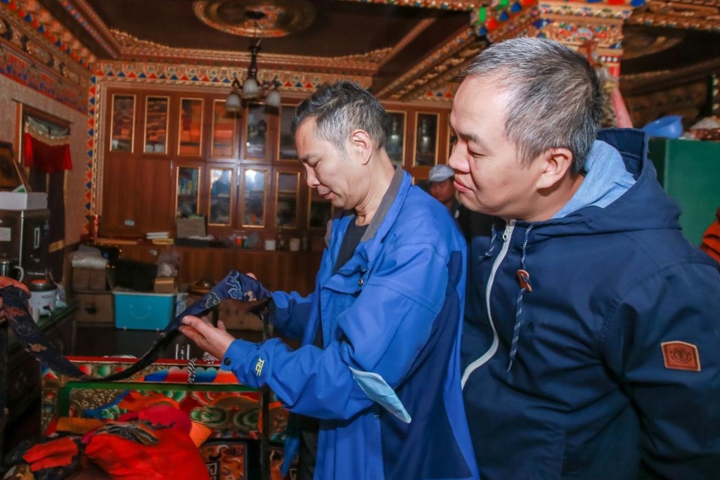 稍有破损的丝绸袍服是跳金刚舞的服装,缂丝工艺使其在二十一世纪的今天仍然显得精美。远离大海的塔公寺,能聆听海潮音的洞口及文成公主在此停留的民间传说,都让专家们加深了康定在“南丝路”上重要位置节点的印象,对接下来沿着甘孜“南丝路”一线,深入探索和考察丝路文化和丝路文明遗存及其实物,有了更多期待。