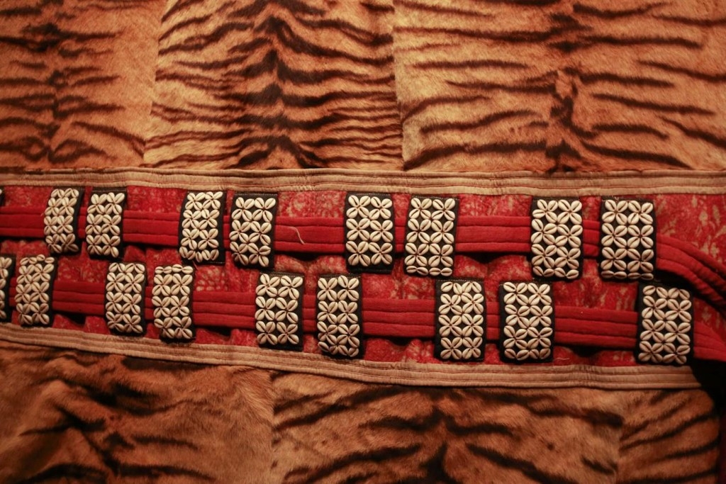 在甘孜州博物馆,这里的镇馆之宝是由百张虎皮和豹皮、水獭皮等制成,有四百年历史的世界上唯一一件虎皮帐篷。帐篷上下部位,围绕镶嵌着不同造型的白色海贝,多达15800多颗。虎皮帐篷的来历说法有二,据《理塘县志》记载,一是大施主丹增曲吉(即固始汗)供奉给西藏来的某位大人物的礼物,二是毛垭土司的传家宝两种。蒙古包式的虎皮账篷说明和蒙古族也有一定关系,当时还曾作为帐中帐。科考专家们仔细观察和拍照海贝这远道而来“外来货”,探讨当年“南丝路”上的贸易往来和人文故事,正是通过类似如今仍可见的实物载体的流动或交易来实现的。