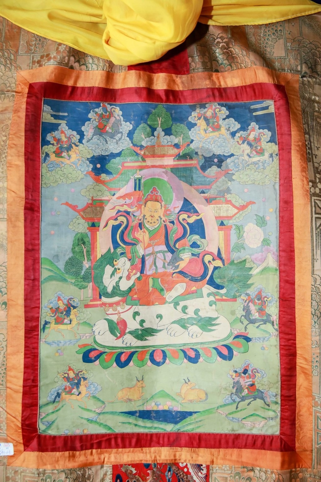 丝绸和丝路文化密切相关,甘孜州非遗馆的丝绸唐卡、官服、柱幡,丝绸衣物残片上的丝织花纹,以及塔公寺收藏的丝绸唐卡,都是现存的丝绸实物。藏文化学者翁堆老师仔细辨认塔公寺的几幅丝绸唐卡,认为皆来自十九世纪,“明代以前的丝绸唐卡不多见了,更多的是清代的。”翁堆老师说,除了丝绸唐卡,还有一些现代出土的银器,明显和中原类似。西藏的丝绸和瓷器,很多是从四川这边运过去的,且丝绸当年由吐蕃的大将专门管理,以防不测。