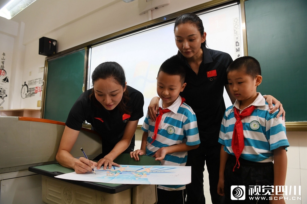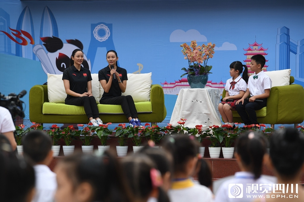 此外,花样游泳世界冠军蒋文文和蒋婷婷姐妹还受邀来到学校,分享她们的成长故事,以及征战世界大赛的心路历程。
