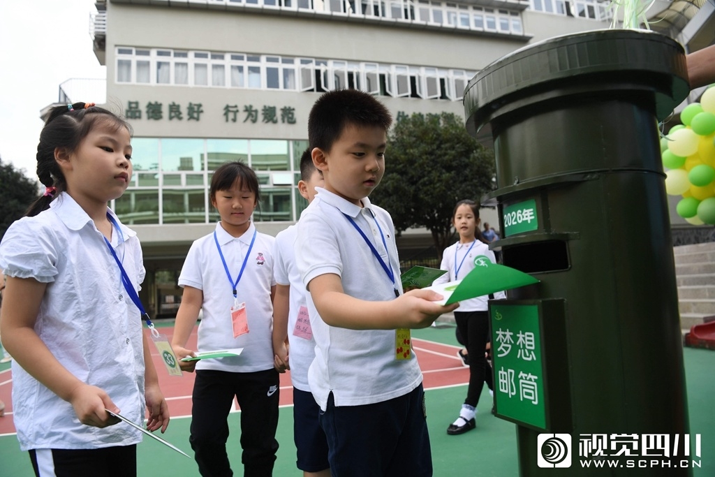 活动中,200余名一年级新生乘坐“梦想滑梯”来到操场,并将一封封满载梦想的“慢信”投进邮筒,寓意孩子们的梦想在学校生根,6年后必将开出艳丽的花朵。