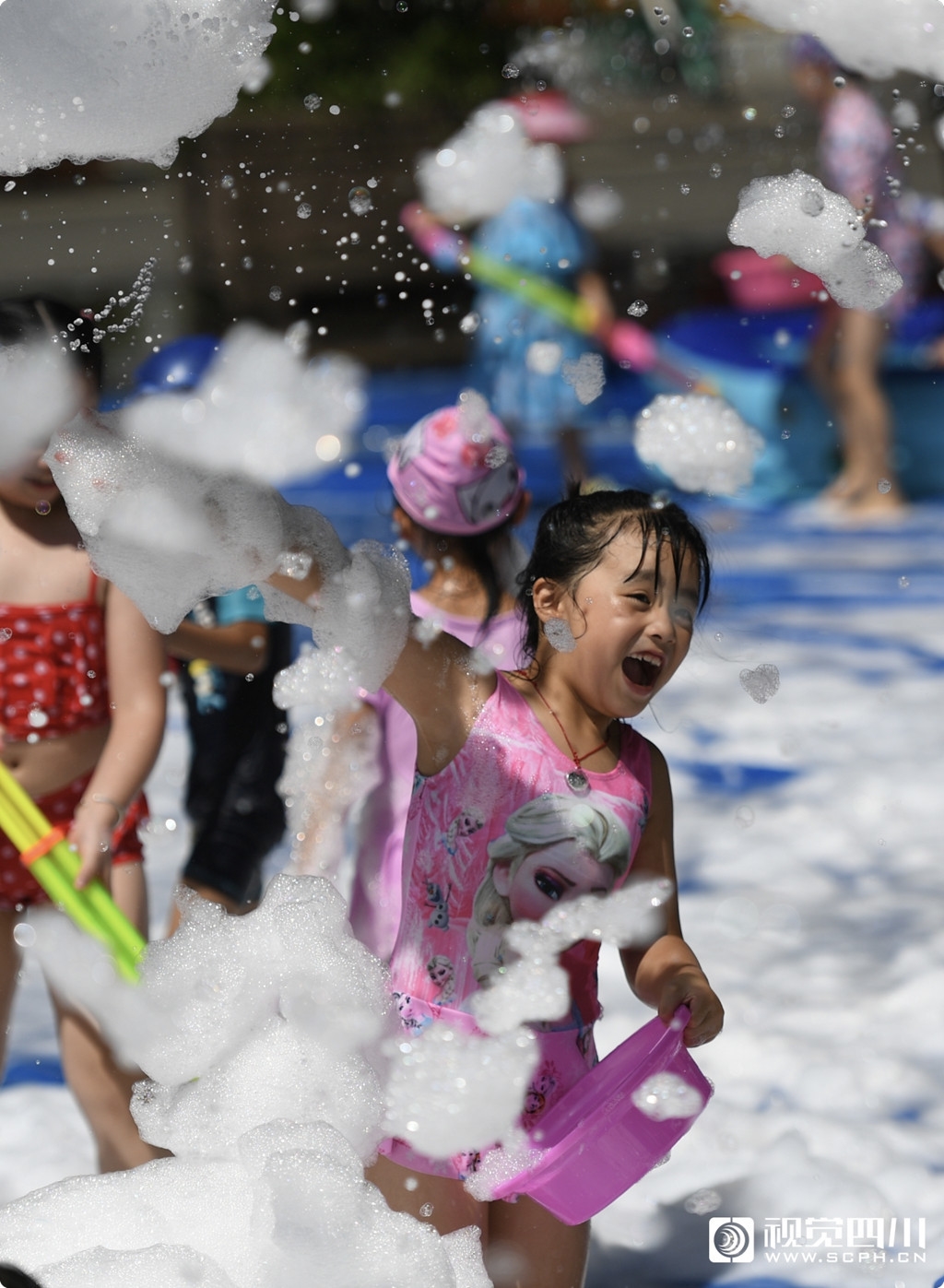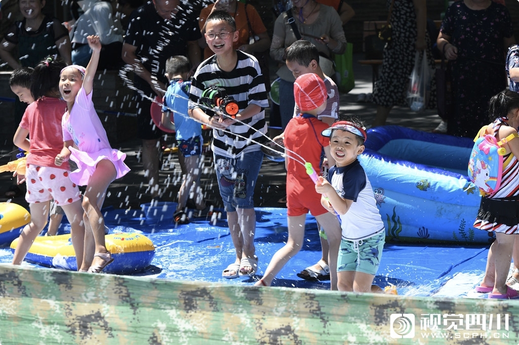 9月1日,“冲啊……快一点把水枪的水加满,我们一起上。”孩子们一声声欢乐的尖叫从成都市高新区芳草街道蓓蕾社区翠园广场传来。