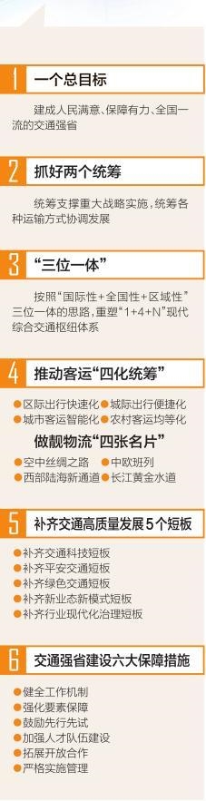 再用15年时间,全面建成全国一流交通强省,到本世纪中叶要迈入全国第一梯队。