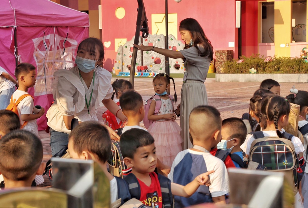 “就这样被‘骗’走了。”举起手向爸爸妈妈挥了“拜拜”,3岁的豆豆牵着老师的手,背着小书包转身往幼儿园教学楼走去,家长倚在门栏外,一边举着手机拍摄孩子入园的画面,一边如是感慨。