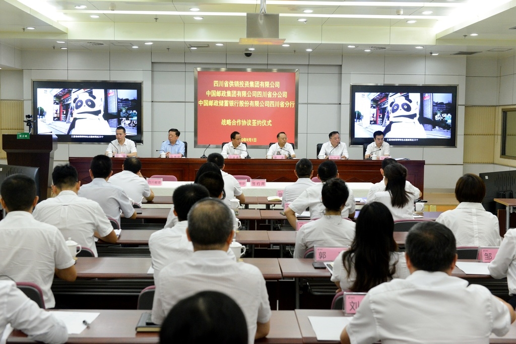 9月1日下午,中国邮政集团有限公司四川省分公司、四川省供销投资集团有限公司、中国邮政储蓄银行股份有限公司四川省分行战略合作签约在省邮政公司举行,三方签订了战略合作框架协议。