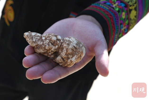 “好东西都在下面呢。”尼波洛村第一书记邬磊拉着记者蹲下来,用手扒开地面上的松针,里面夹杂着不少黑色羊粪蛋。挖了有几公分,终于在土壤中见到了重楼的根茎,那也是整株重楼最值钱的部分。