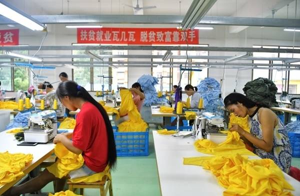 2017年以来,马边县用时3年在黎明村建起易地搬迁楼盘式安置集中点。下山,上楼,用上自来水、天然气……从雪口山镇黎明村、永兴村、温水凼村等7个行政村搬迁而来的593户2912名农户安有所居。为保障这个全市最大易地搬迁安置点的群众实现“搬得来、住得下”,对口帮扶马边县的浙江省绍兴市越城区在黎明村2组援建了这个制衣工厂,创造就业岗位85个,主要以当地贫困群众为主。