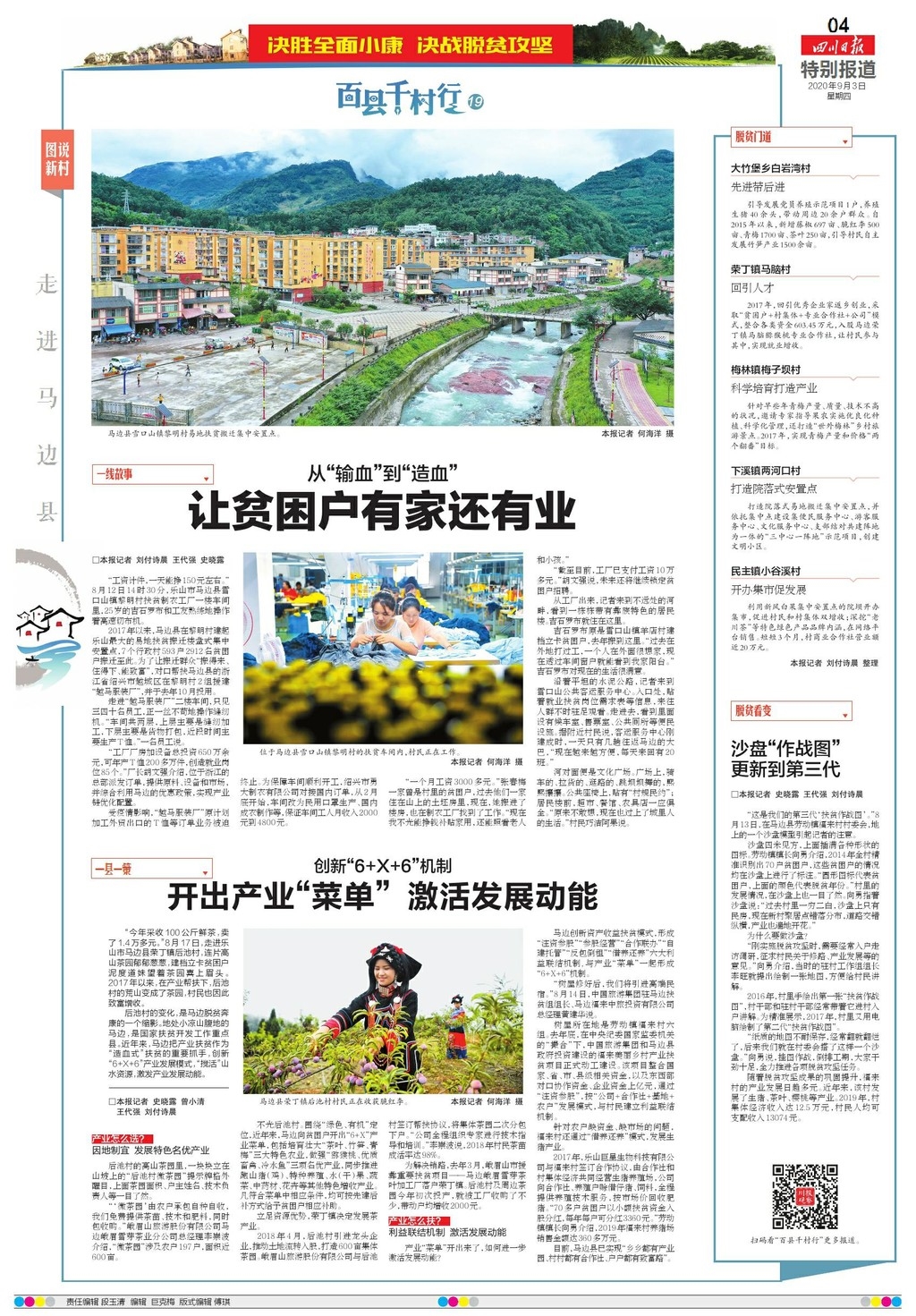 9月3日,《四川日报》一版重要版面及四版整版报道马边脱贫攻坚故事、展现马边发展新貌。