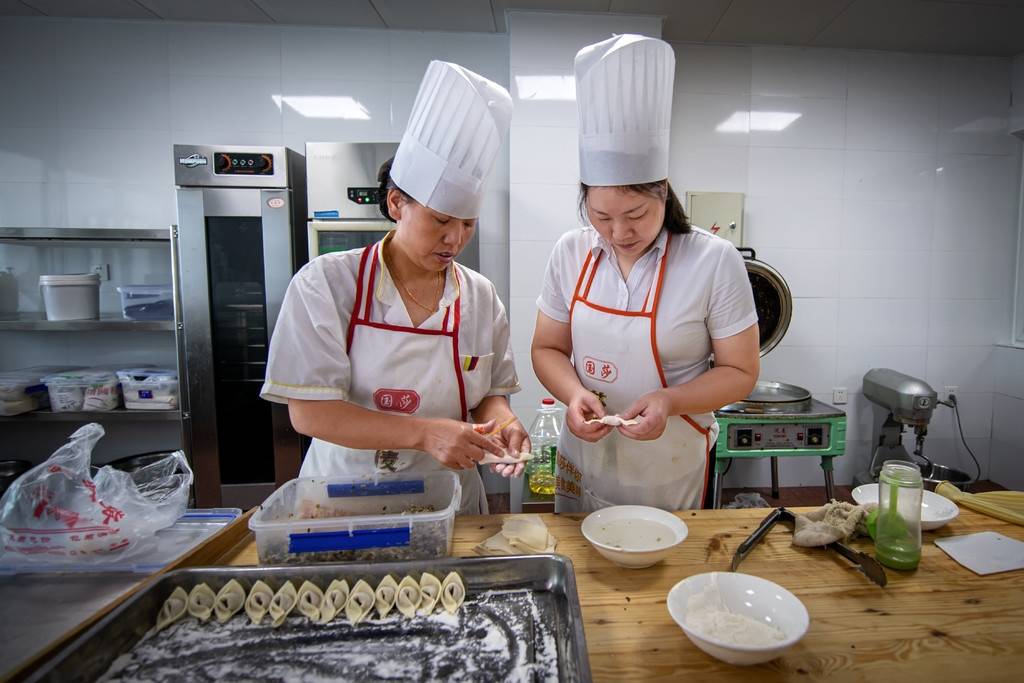 “饺子皮是圆形的,制作中会产生不少边角余料,我们可不能浪费。”面点师龙美玲说,他们每次都把剩下的饺子皮用来做饼,这样不仅节约了面粉,也增加了餐厅主食供应的品种。