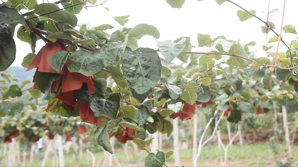 9月3日,广元市苍溪县永宁镇大桥村,贫困户阳定贵走进自家的猕猴桃园,看着树上一个个套着泥黄口袋的“金果子”,眼里满是丰收的喜悦。