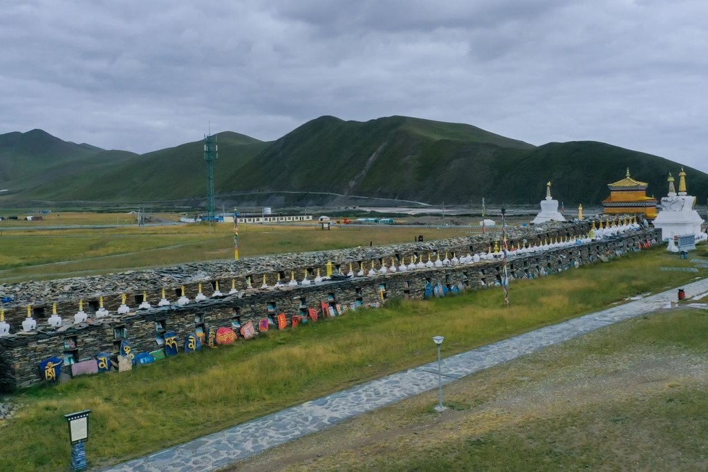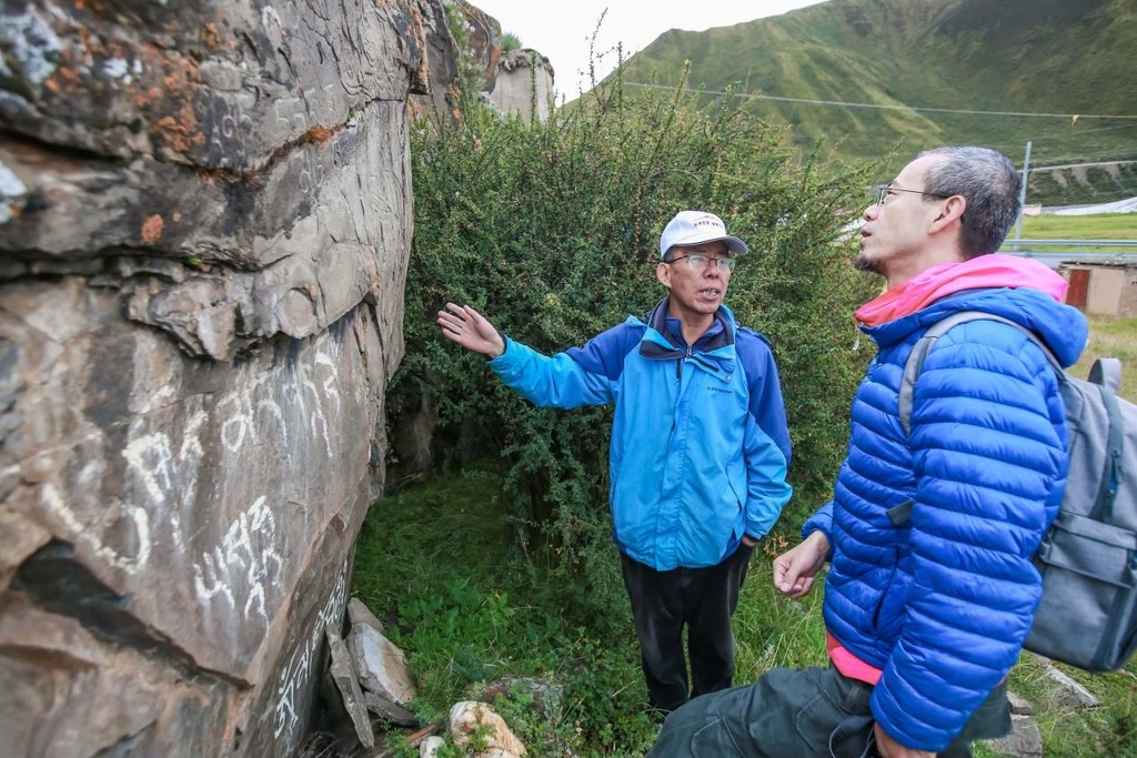 此外,古道旁的石经城和石经墙也令科考团一行感到震撼。作为国家级重点文物保护单位,位于石渠县阿日扎乡扎溪卡草原的松格嘛呢石经城,高约10米,由数不清的图像和祈愿文等内容的玛尼石堆砌而成,据传有千年历史,文字以咒文和祈愿文为主,图像主要是格萨尔题材和佛教题材,是迄今发现较早的嘛呢石经和图像遗存,推测为18世纪的作品。位于长沙贡马乡的巴格嘛呢石经墙长1.6公里,是载入吉尼斯世界纪录最长的玛尼墙,有三百多年的历史,内存石刻佛像3000多尊,另有《甘珠尔》《丹珠尔》石刻经文。