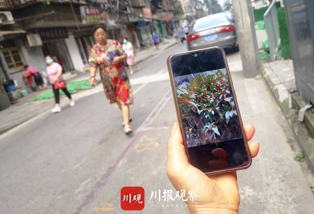 打扫卫生的梁大姐给记者展示去年桂花满地的照片