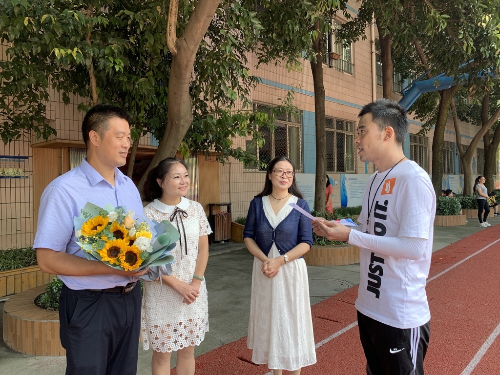 这一天,金牛区各校园内,一场上门送惊喜的活动悄然展开。教室里、操场上、办公室内,收到这份礼物的校(园)长、老师们满是惊喜。一束束鲜花装点了喜庆的节日氛围,一张张满载温情话语的精美贺卡更是书写出了对教育工作者的崇高敬意,贺卡中,有来自同事领导的关怀,有来自学生家长感恩、更有来自家人朋友的祝福,让大家感动不已。